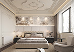 为了提升睡眠质量,卧室使用了相对较多深色色彩进行装饰,深褐色的地毯,黑色的墙面,很好的营造了一种夜幕降临的宁静氛围感,而白色的吊顶设计,则让空间多一份清新韵味 MK体育平台登录