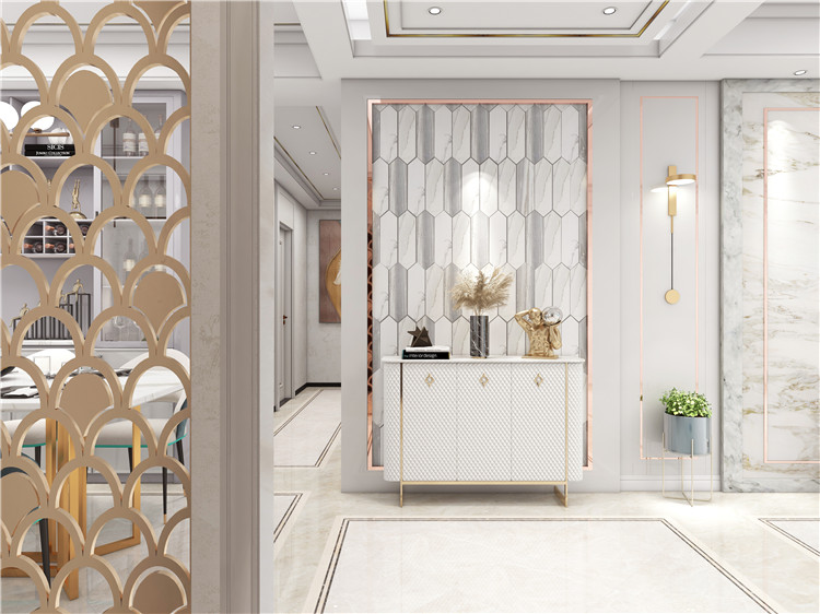 大面积的白色强调了一种清新悠然的典雅美,金色的线条处理则为空间平添一抹高级品质感 MK体育ios版