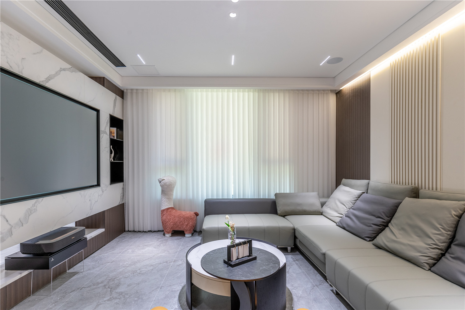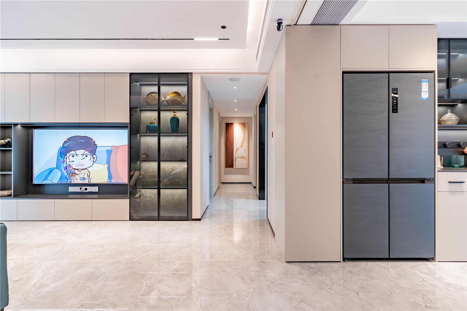 大理石电视背景墙既可以起到装饰点缀客厅的作用,又将客厅与外部空间进行软隔断,有效提升空间的界限感 MK体育集团官网