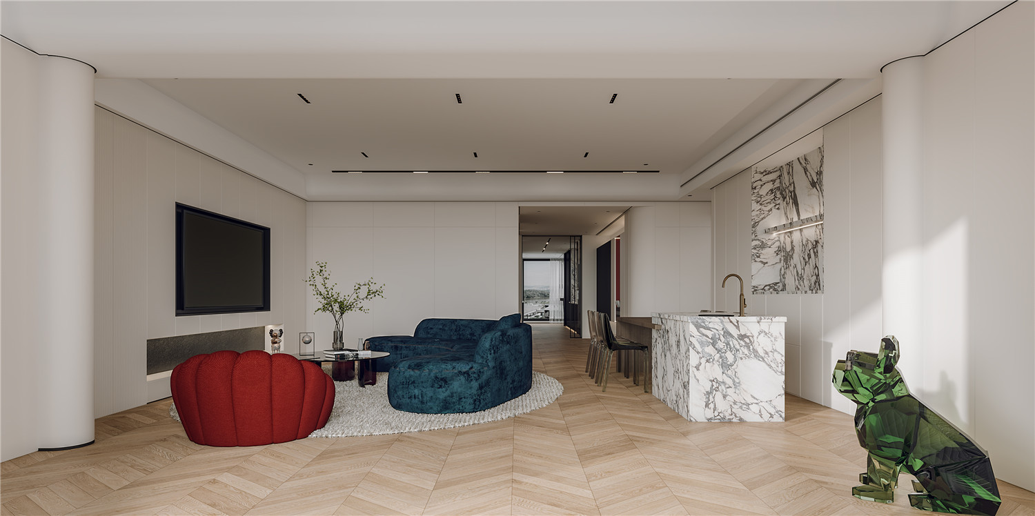 张家湾小区这套住宅的面积只有90㎡ MK体育安卓版,原有的功能结构设计中只要两个卧室,并不足以满足业主的使用需求,因此设计师根据业主的需求与想法将阳台尽头区域的小空间改造成迷你保姆房,以提升空间利用率,就餐区域则设计在客厅区域的同一空间中,以减少空间浪费,半开放式的厨房设计现代感十足,且有利用提升家居空间的视觉通透感。