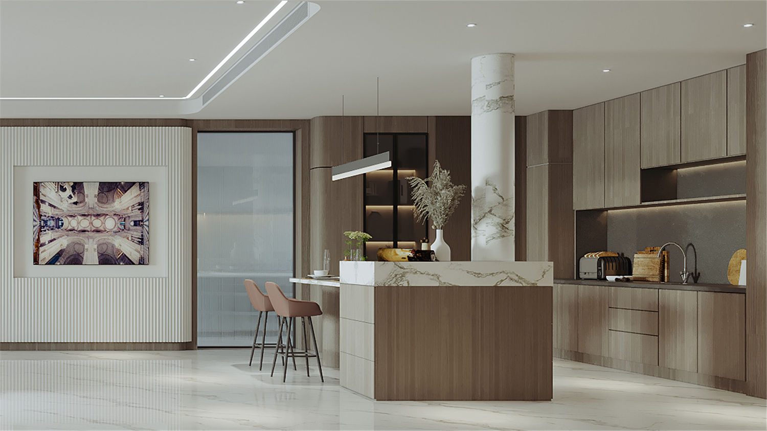 可以区域借助大理石大面打造结构感,并利用高低差满足日常坐卧需求 MK体育安卓版,现代时尚感浓烈。
