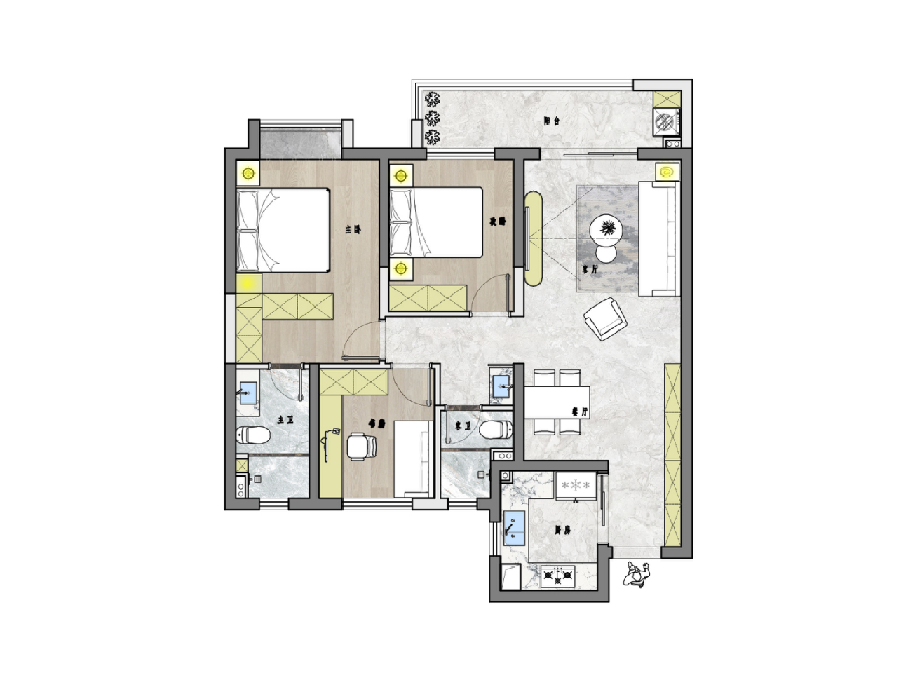 2    保留原始结构,舒适三房满足三代同堂的家庭。