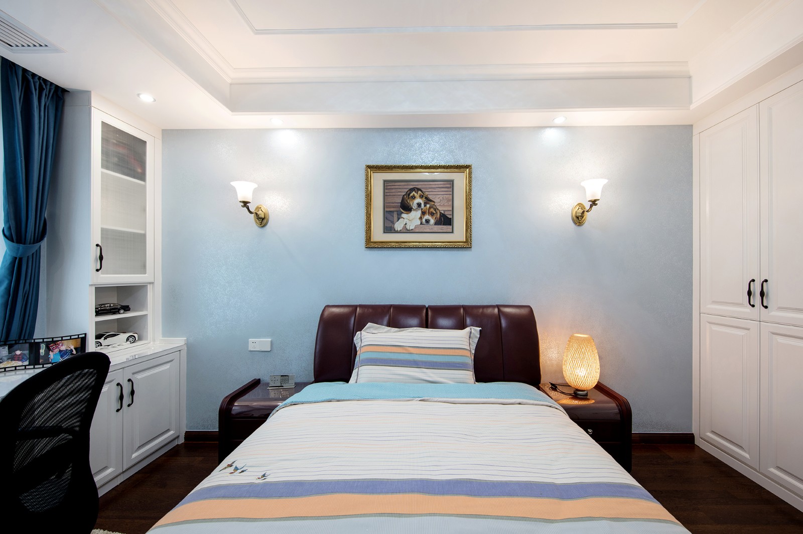 案例简介:本案例的业主是高级白领,对家有着自己独特的了解,因此在与设计师交流的时候表达了自己希望拥有一个个性化的家居空间 MK体育,同时,由于业主夫妇目前带有一个刚上幼儿园的小朋友,因此在设计的时候希望能够将童真也融入其中,为孩子打造一个趣味十足的生活空间,基于此,设计师选择了个性感相对比较浓厚的美式装修风格,再搭配以各种清新明丽的色彩,来营造一种自由洒脱而又不失童真的个性家居。