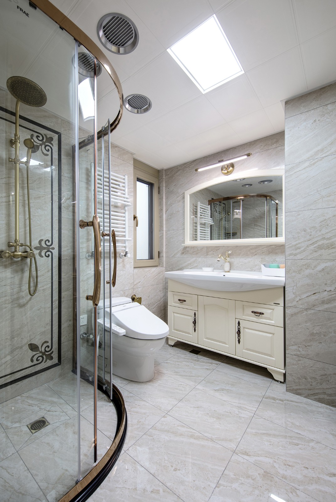 半圆弧的玻璃滑门既可以起到干湿分离的作用,又为卫生间增添了一抹艺术氛围 MK体育平台登录。