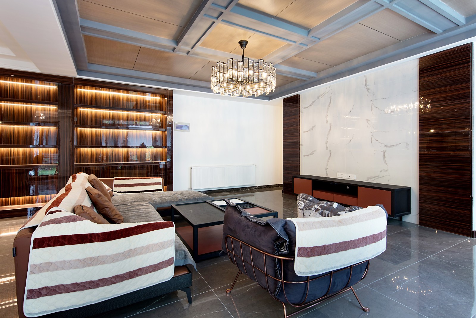 大理石背景墙搭配上灰色地砖 MK体育最新版本,为地下空间营造了一种清雅的气质,而是丝绒材质的沙发则让空间多了一抹柔和温馨感。
