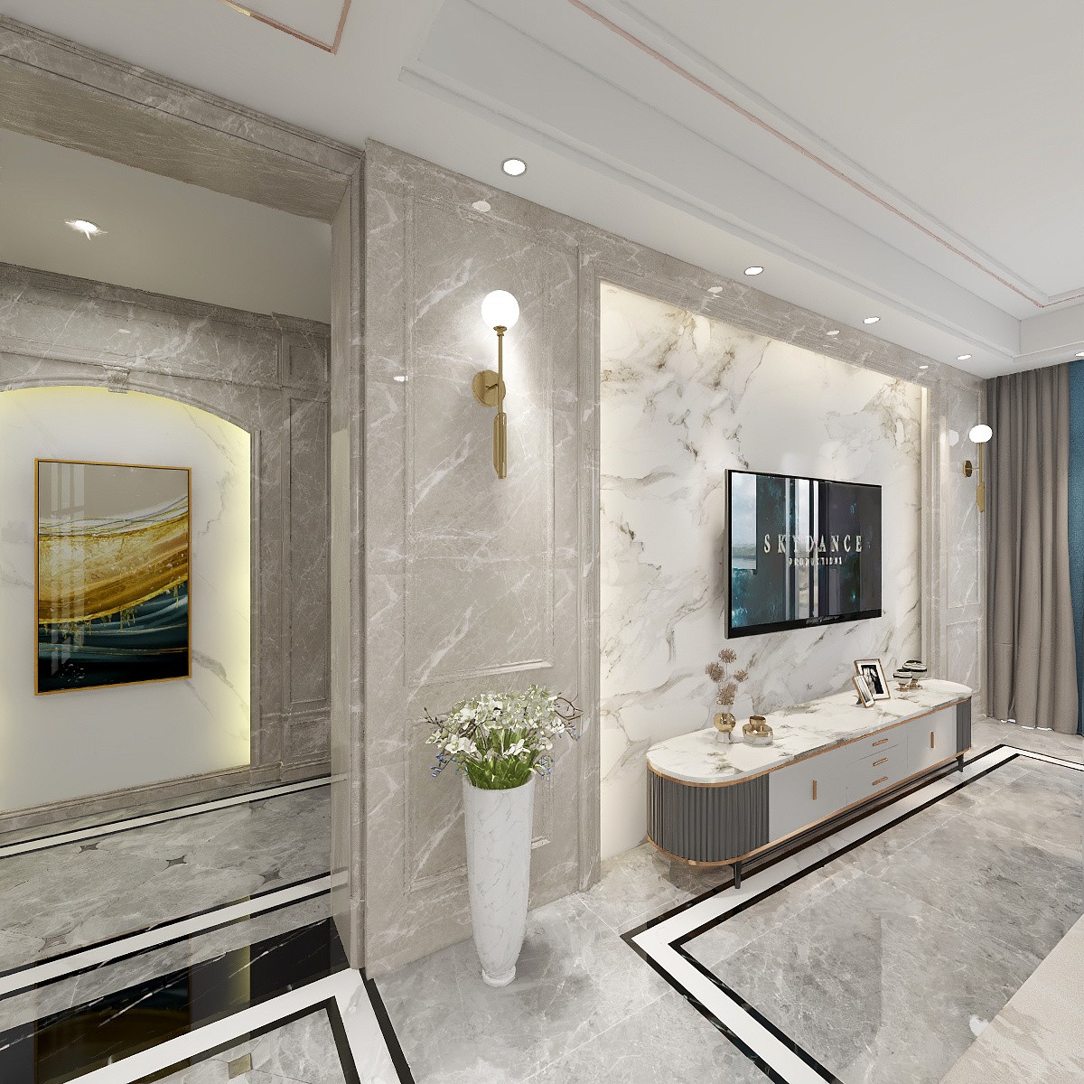 带有天然清冷气息的大理石材质搭配上造型简单的吊灯,简约而又耐看 MK体育官网,日常打理也相对比较容易。