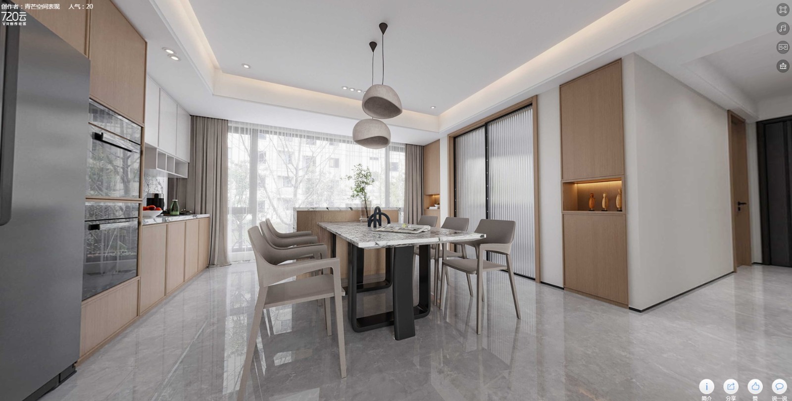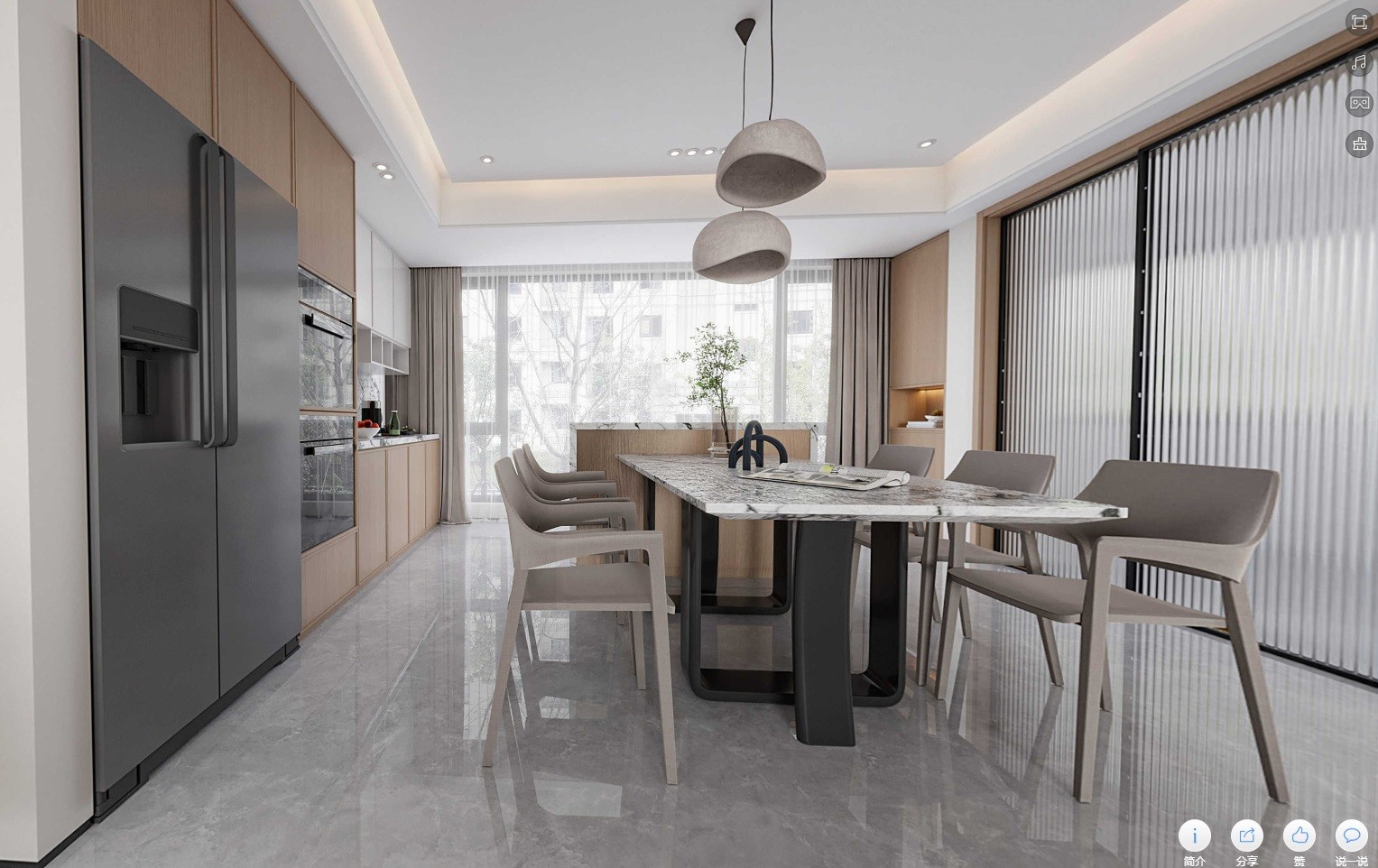 嵌入式双开大冰箱存在感不强且能够满足日常使用需求 MK体育手机版,长条形浅色餐桌耐看且能够满足多位家庭成员的就餐需求。