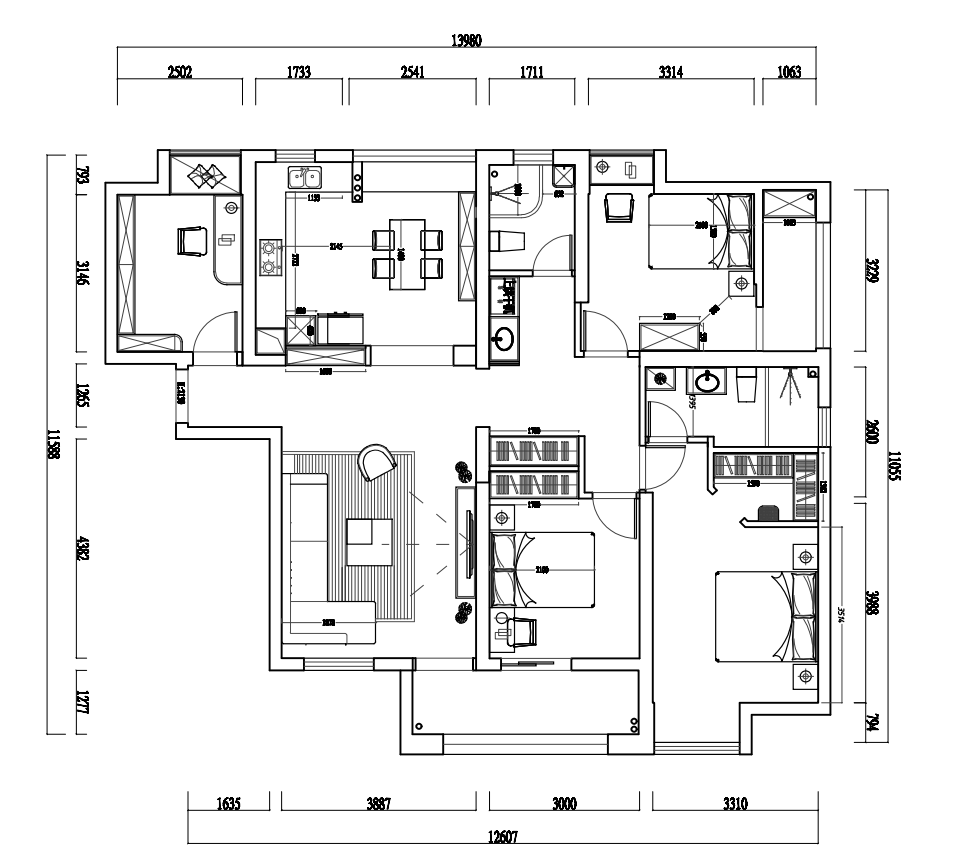 百瑞景的这套160㎡四居室住宅原有的户型结构相对比较正方平整 MK体育app下载,不过存在着部分难以利用的小空间,因此设计师在进行规划设计的时候将小空间打通改造,释放空间功能,如客厅区域与卧室区域的外部区域直接打通改造成一个大阳台,将两个小空间整合在一起以提升空间利用率,入户走廊尽头的空间则直接纳入主卧空间并改造成一个迷你的卫浴空间,提升主人日常起居生活的便利度。
