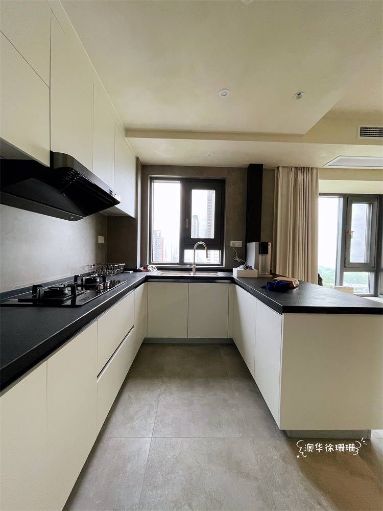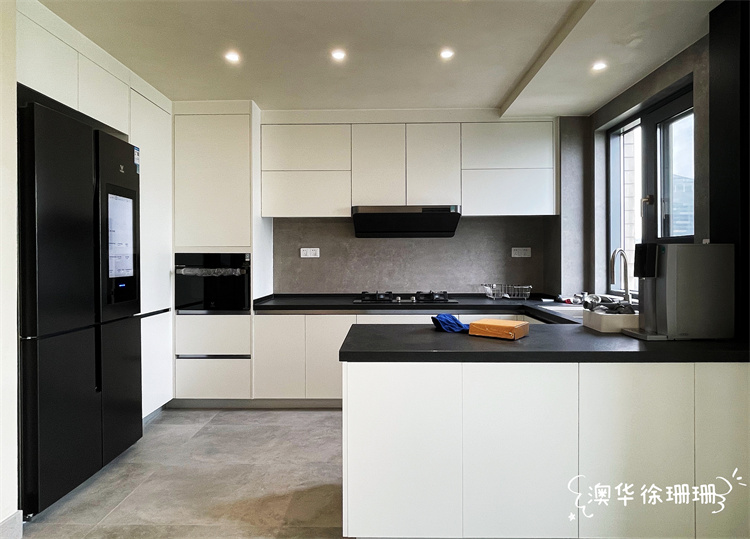 半开放式的厨房突出空间通透感 MK体育手机版,黑白经典配色耐看又时尚。
