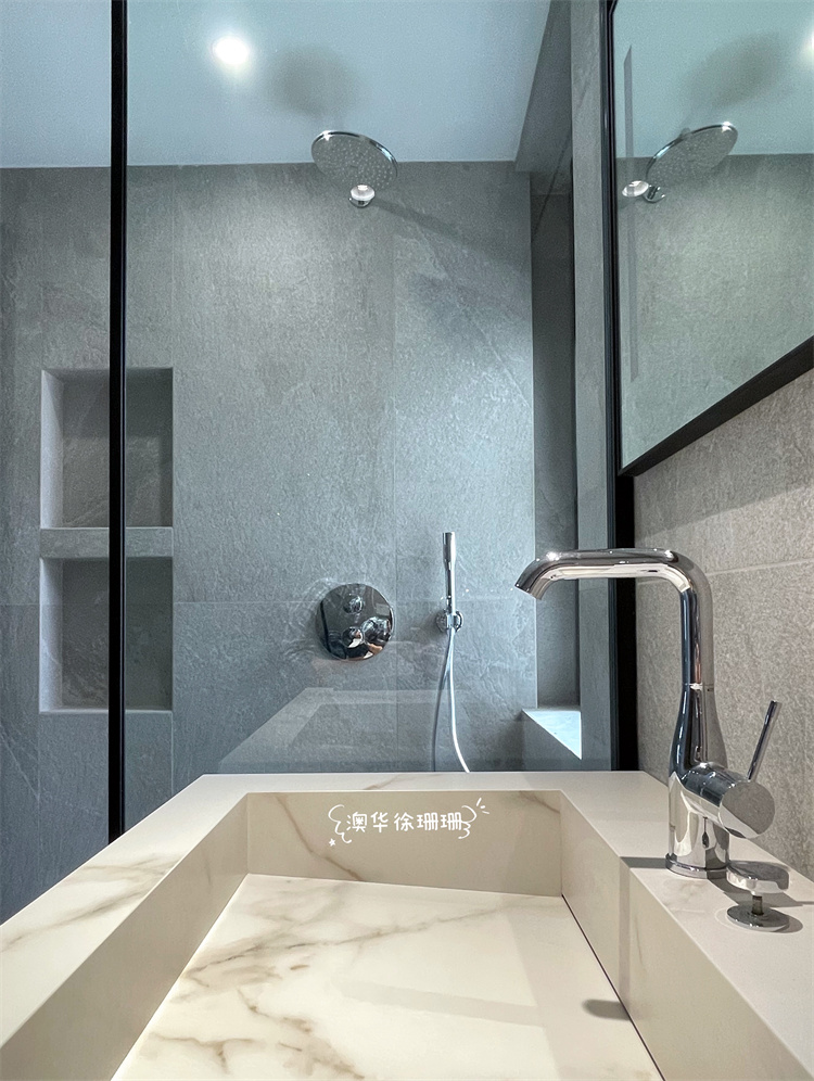 卫生间区域借助玻璃推拉门进行干湿分离 MK体育安卓版,同时利用黑色镶边打造空间结构感与层次感。