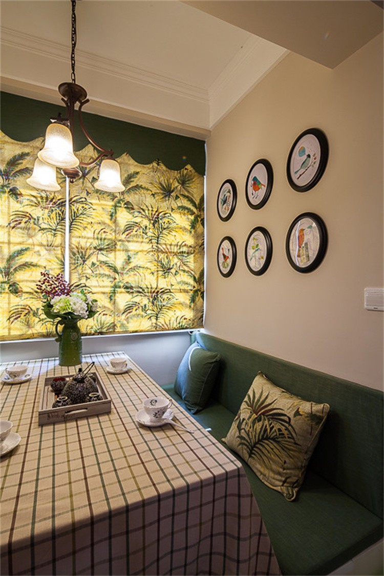 绿色桌椅搭配上方块桌布,营造小清新浪漫氛围 MK体育手机版。