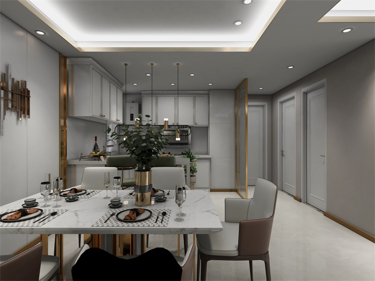 大面积的白色强调了一种清新悠然的典雅美 MK体育官网,金色的线条处理则为空间平添一抹高级品质感。