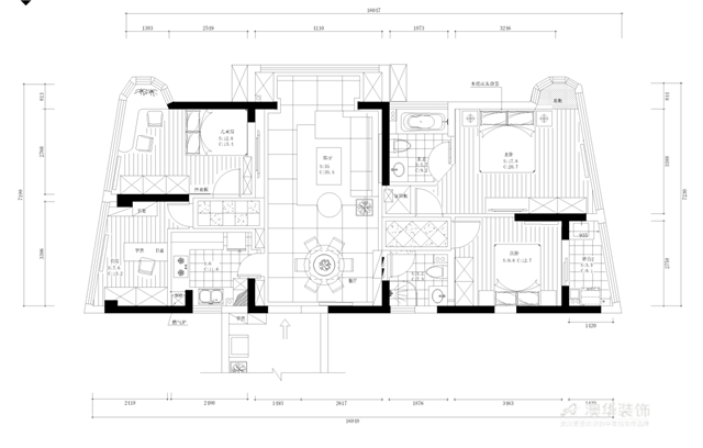 新华联青年城160㎡四居室舒适美式格调住宅户型解析