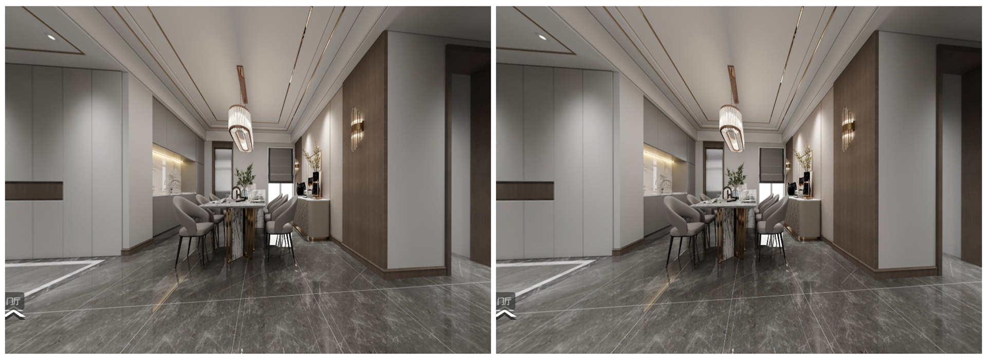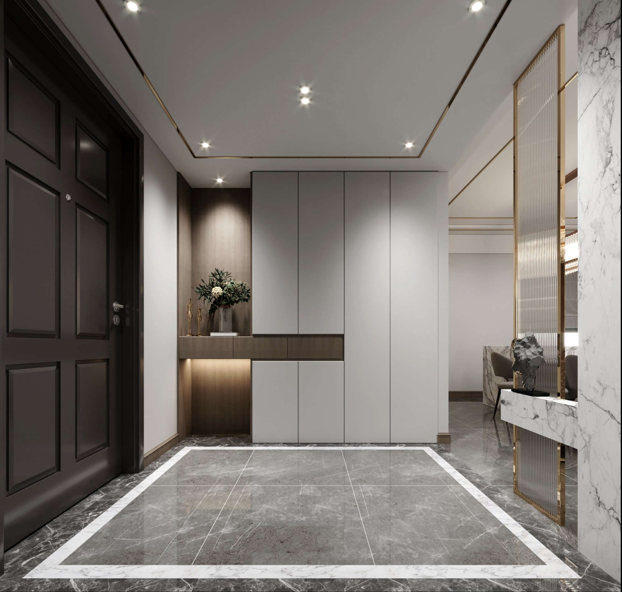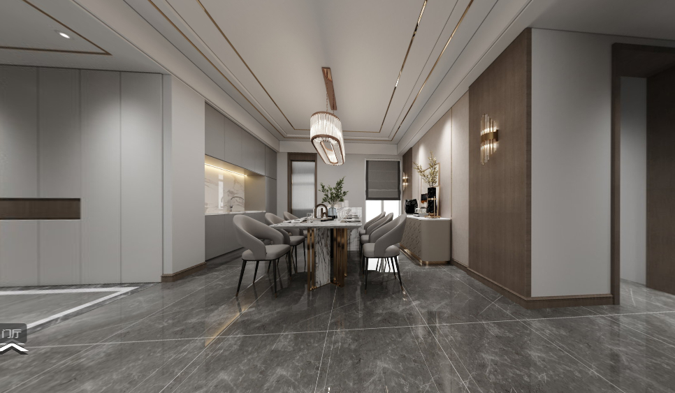 客户从事教育工作,喜欢家里简单整洁但是要有格调,客户地面用750*1500大砖,墙面岩板和木饰面的结合,入户不是一进门就一览无余,而是大户平层独有的入户玄关,保留一丝的神秘。餐厅增加中岛,水吧的设计,让功能性更全。