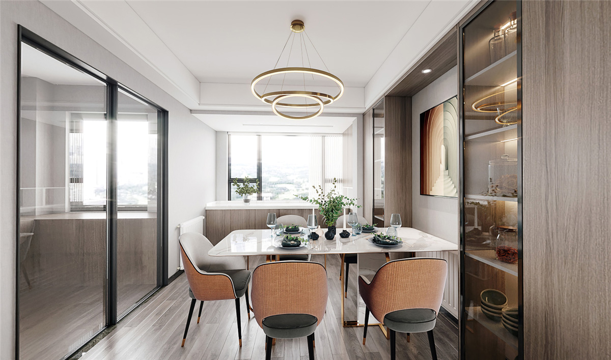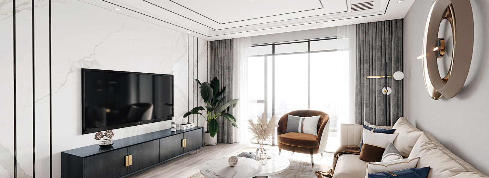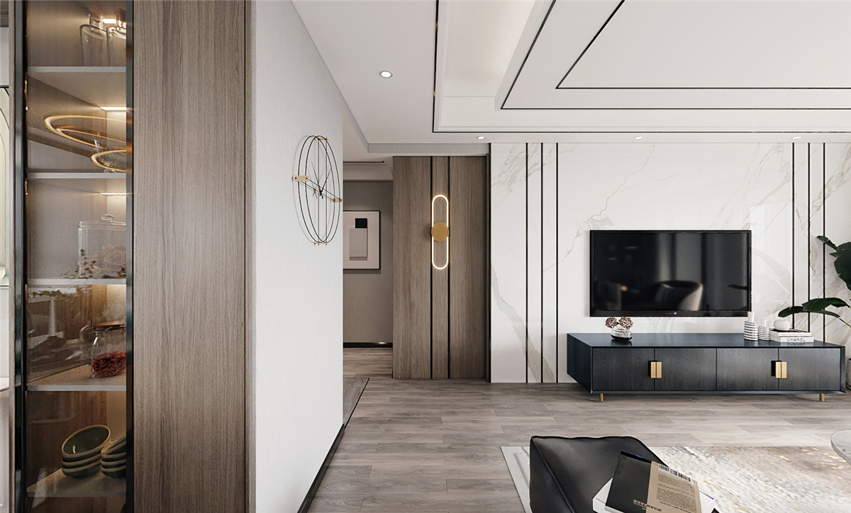 本案中,设计师以“简化生活”为设计理念,以“回归”为主题构思,是为了满足业主希望在繁忙的一天工作后,回到家中去找寻一份宁静与温暖的诉求,让业主回归家、回归生活、回归自然。现代简约风格客厅是当下很受人们欢迎的一种设计搭配。无须华丽的装饰,无须贵重的家具,简单的颜色搭配带来的明媚感将整个客厅的拘谨一扫而空。材料运用和色彩选择上显得额外低调和柔和,整个空间色彩搭配显出个性与品位,简约而时尚,可以承载更多的时尚元素,同时让家更宁静而温馨。空间以自然的色调与简约的设计相融合,不仅反映出现代人追求简单生活的居住要求,更体现出家居设计风格的内敛和质朴,使简约风格更加实用、更富现代感。