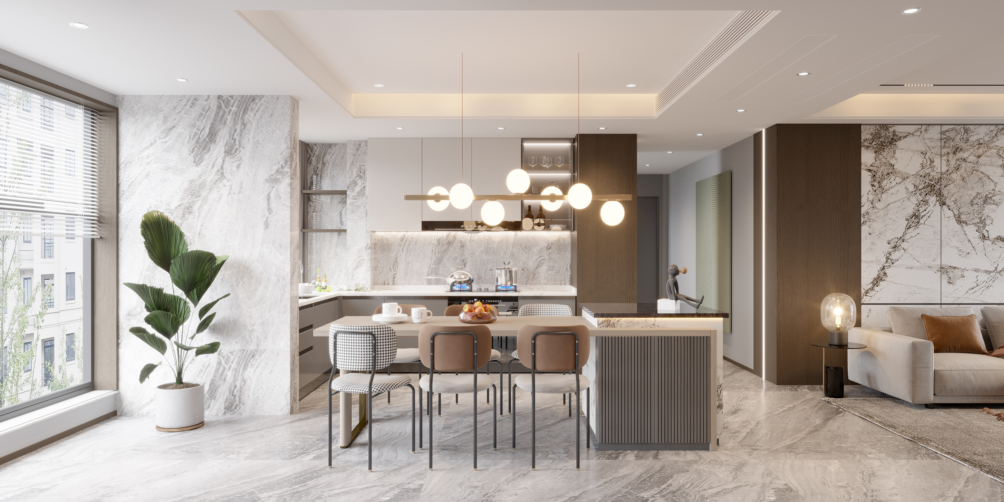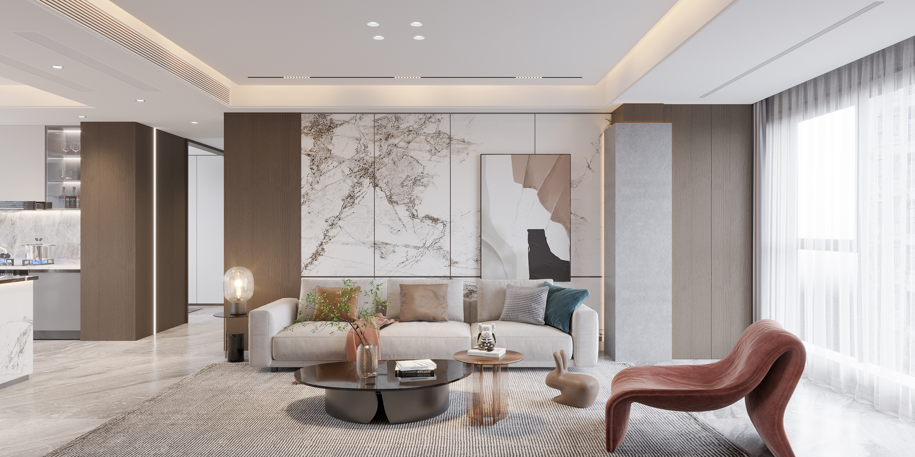 现代低调奢华风格这种气质多数通过一些精致软装和材质的质感来体现。营造出舒适、通透、合理的使用空间,让整个空间透着一种清澈、静怡、宁和、雅致之美。现代轻奢风格强调简单中有奢华感受,看似简洁素净的外表之下融入时尚轻奢的特质,展示着精致优雅的生活态度,不需要走在前端,更不需要炫耀夸赞,低调,舒适,却无损高贵与雅致,尽情享受生活的美好。