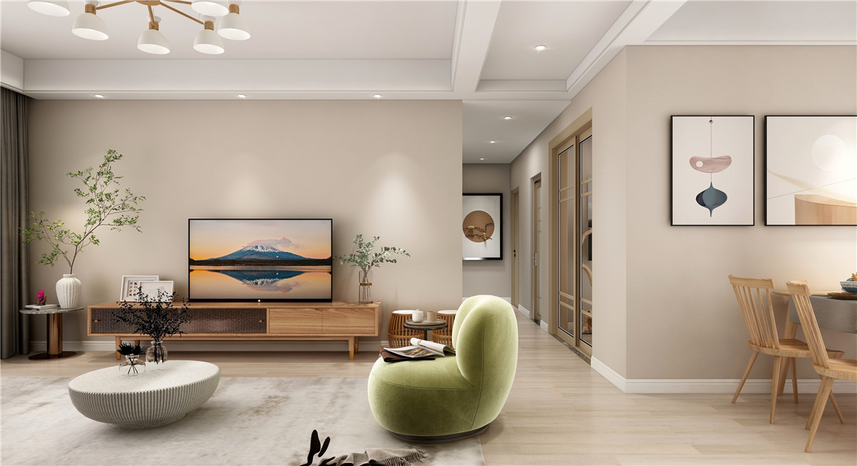色彩明亮的客厅,暖冬的时候阳光洒满整个客厅理想空间,质地柔软的沙发,立体感极强的装饰立面,阳光穿透灰色的纱帘洒落在橡地板上,显现出无尽的温暖与明朗,让房子的主人更加舒适享受生活带来的新福时光。