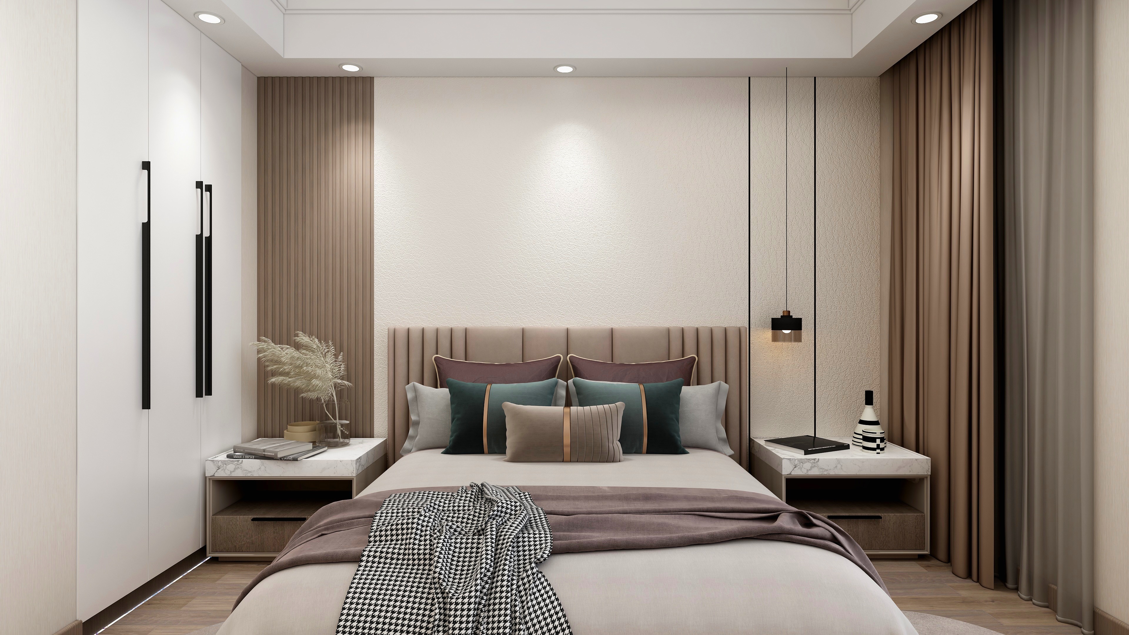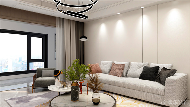 三代同堂居住需要简单实用而又不过于单调,让三代人都能感受到家的温馨,同时也能够放松下来房子属于南北通透,采光跟格局都比较好,主卧与衣帽间融为一体成为一个大套间显得空间更加规整大气。