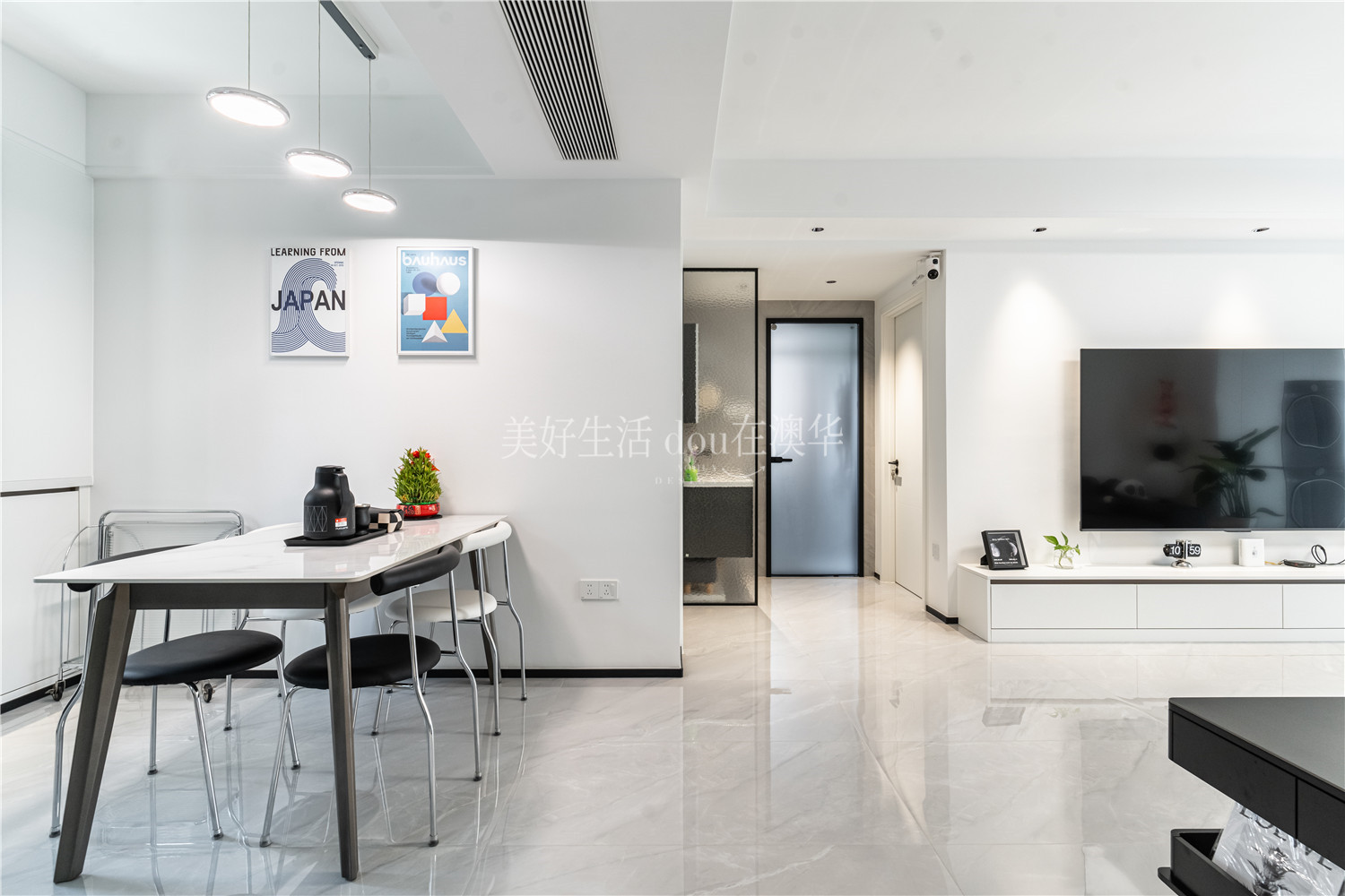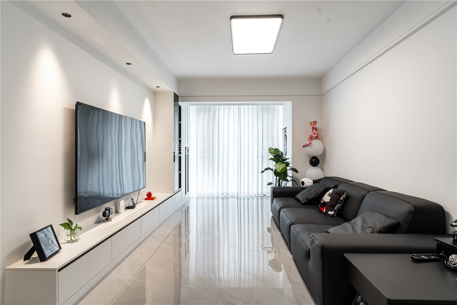 • 客厅以清新雅致的黑白灰为主旋律,铺就素雅简洁的空间基底。大面积纯白铺陈,轻盈而纯净,黑色巧妙点缀,层次分明,空间更显利落与雅致,每一处都彰显着不凡的现代生活美学。