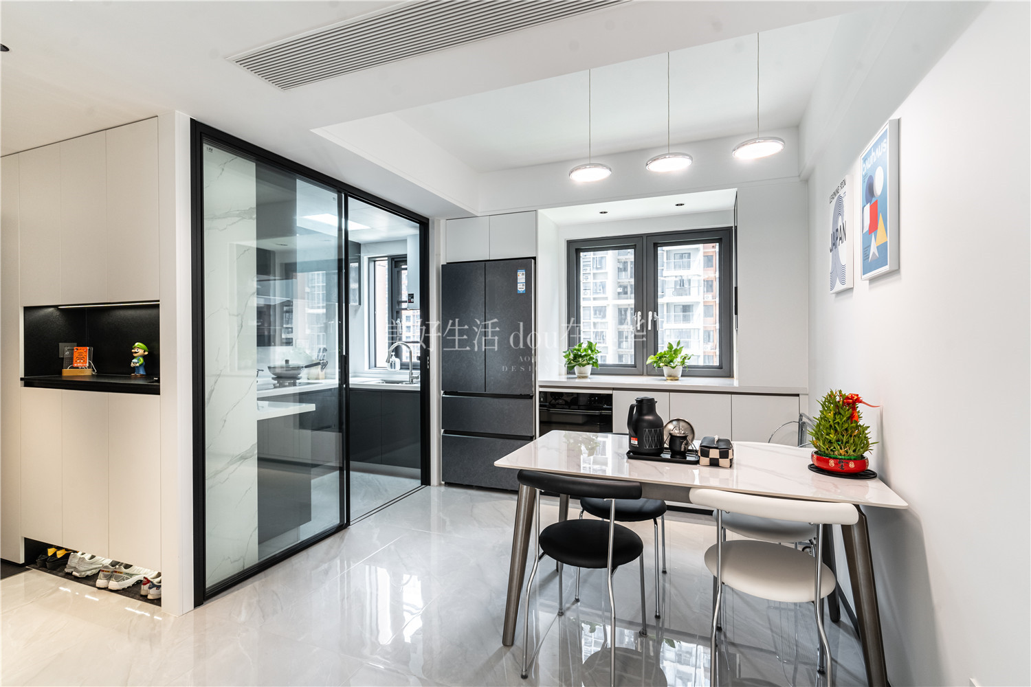 • 餐桌椅依墙而设,为过道腾出宽敞自如的行走空间,更增添了几分从容不迫的韵味。