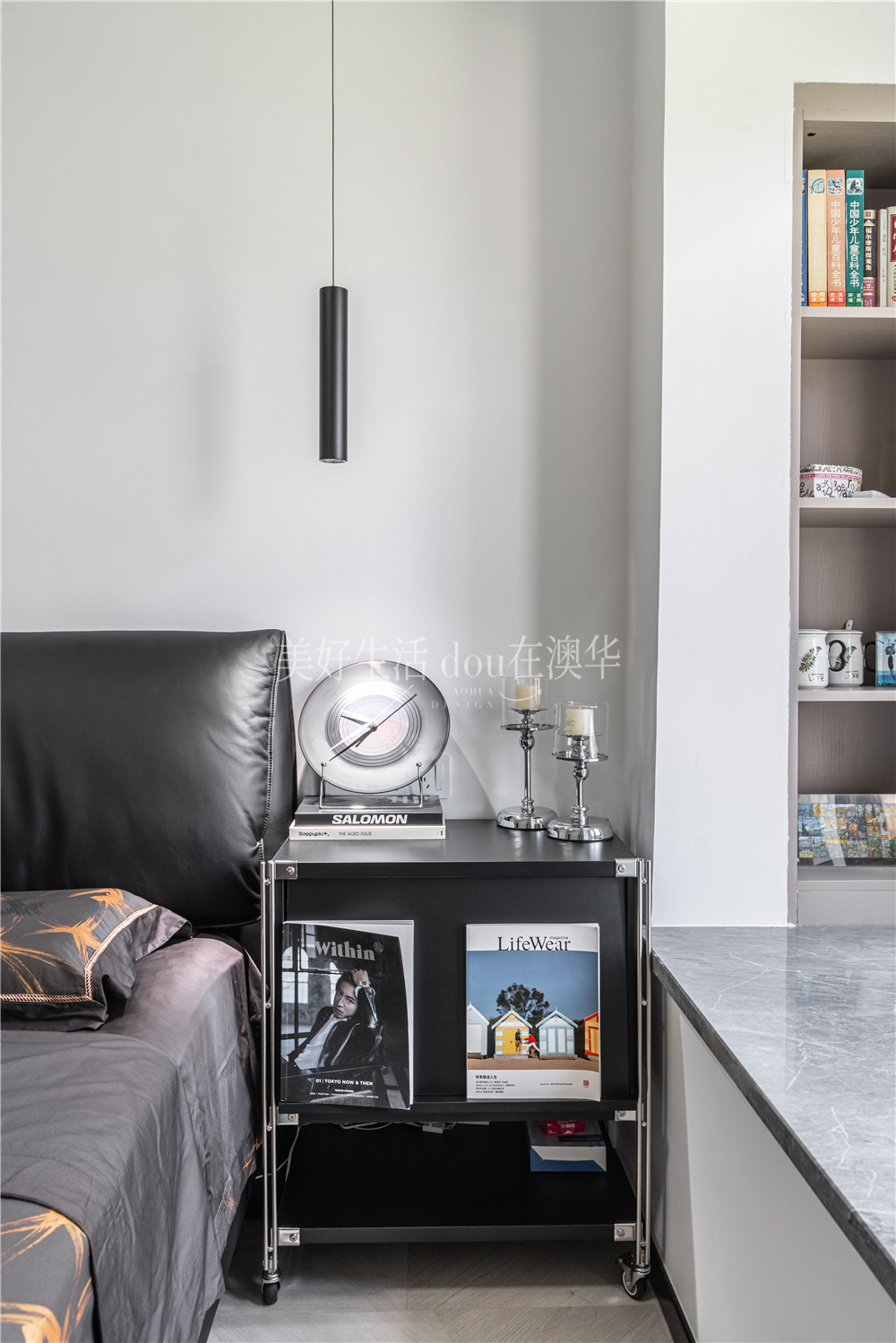 • 主卧以淡雅纯粹的色彩为基调,缓缓拉开温柔舒缓的空间序幕,同时摒弃复杂造型,于简约中展现自由松弛的生活旋律。